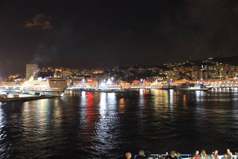 Das Bild habe ich bei der Abfahrt um 22:15 gemacht Genua bei Nacht