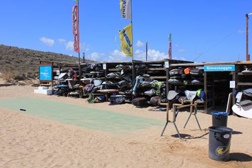 An dieser Stelle kann man sein mitgebrachtes Material auf den zur Surfstation gehörenden Pickup umladen. Es wird dann von den Mitarbeitern zum Strand gebracht, so muss man nicht schleppen. Mit dem Auto kann man als Gast nicht zur Station fahren, es führt keine Straße dorthin. Auch findet man hier in einem Schaukasten einen aktuellen Ausdruck aus dem Windfinder.