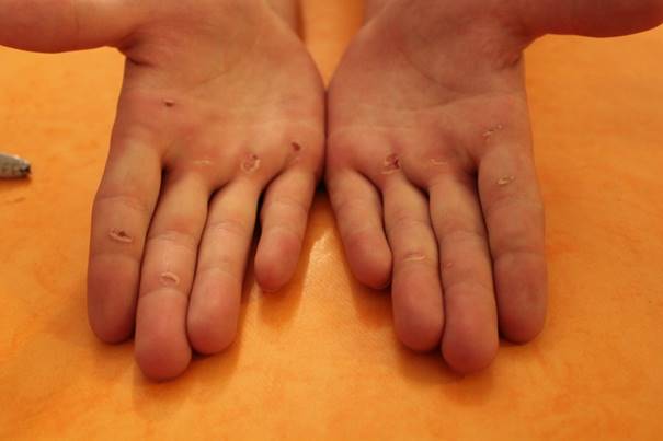 Grundsätzlich sollte man an einen richtig guten Sonnenschutz schon zu Hause denken, denn vor Ort nimmt man es wie überall an den Urlaubscentren dieser Welt von den Lebendigen. Für unseren Sohn haben wir am 2. Tag erst einmal Handschuhe gekauft – seine Blasen an den Händen waren alle offen und das Salzwasser ließ die Händen brennen. Im Bild unten sind die Stellen wieder verheilt.