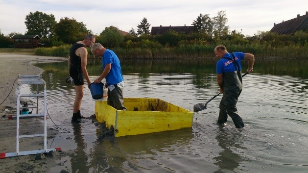 Ein besonderer Arbeitseinsatz war das Entfernen des 2,5 m langen Stahlseiles mit einer Schlaufe am Ende, was auf Grund des niedrigen Wasserstandes gut gelang.