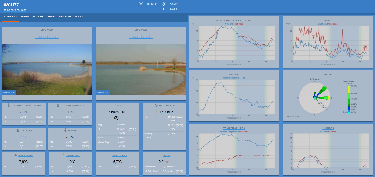 - Werte sind hier minutengenau (alte Station 30 min) - Seite wird nach jeweils 5 Minuten neu gebaut - es gibt einen 7-Tage-Rückblick bei den Videos - und ein komplett neues Design Einfach etwas damit spielen ;-) und schauen was geht. ![]() Hang loose und bleibt gesund Joachim p.s.: Weitere Kameras folgen im Laufe des Jahres |