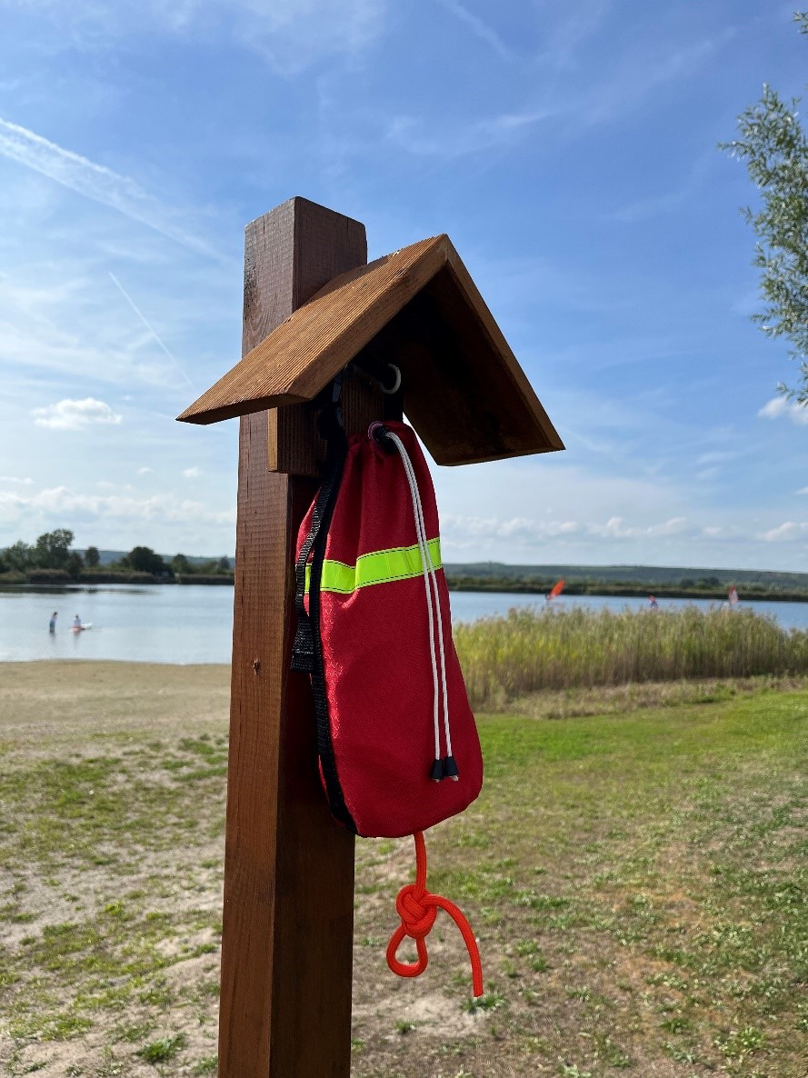 ![]() Diese Neuanschaffung ist ein Wasserrettungssack. In ihm enthalten ist eine 30m lange Leine, die zur Rettung von in Not geratenen Wassersportlern gedacht ist. Man füllt den Beutel mit Wasser (1Liter) und wirft ihn dann der Person im Wasser zu. (Das Ende der Leine behält man in der anderen Hand!) Diese kann sich dann an der Leine festhalten und auf diese Weise vom Helfer an Land gezogen werden. Bei unserer Schulung „Wasserrettung“ haben alle Teilnehmer dieses Hilfsmittel als am besten geeignet eingestuft. 3 Wasserrettungssäcke haben wir angeschafft und am See verteilt aufgehängt. Einer befindet sich an der Hütte, einer am neu aufgestellten Pfosten an der Wetterstation und einer ist in der Schweinebucht installiert. Wer am See ist sollte sich mit dem Hilfsmittel vertraut machen und ein paar Würfe üben. Das hilft uns allen! Euer Vorstand |